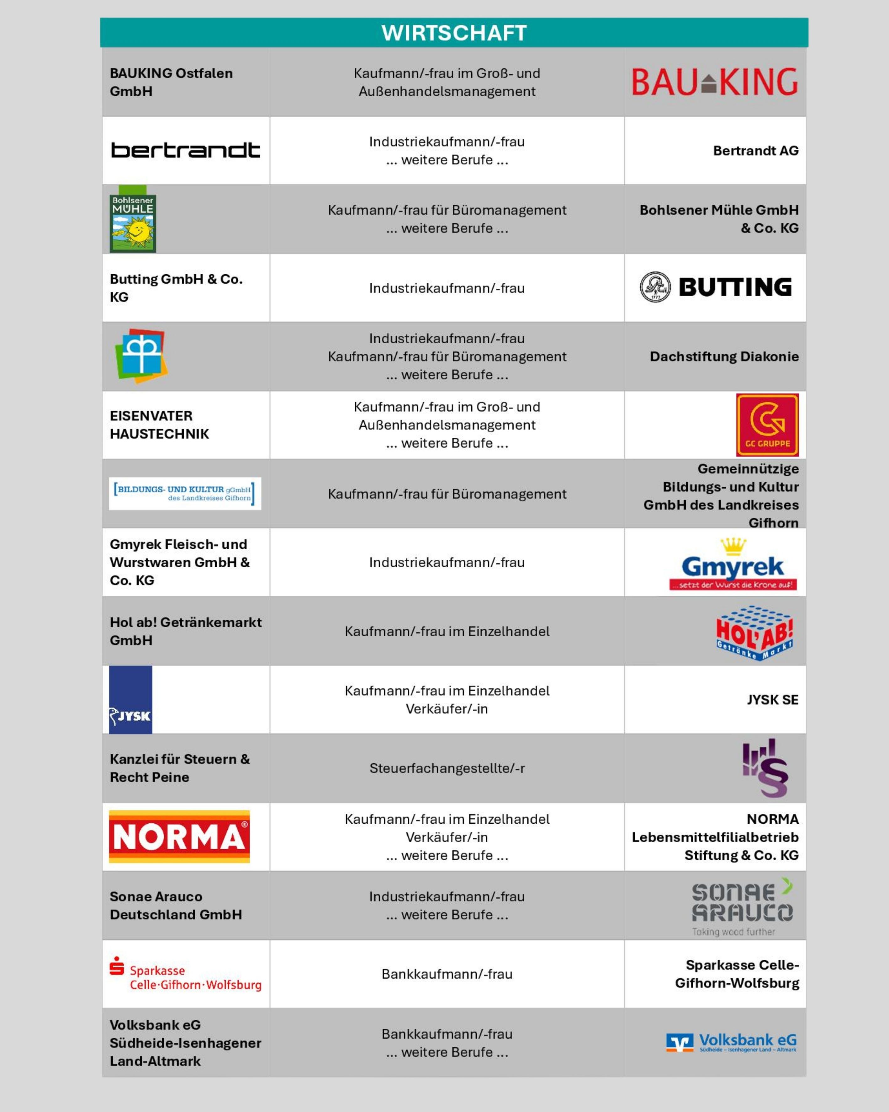 🤝 Vor Ort erwarten euch zahlreiche Unternehmen, die Auszubildende für das Ausbildungsjahr 2026/27 suchen – unter anderem aus den Bereichen