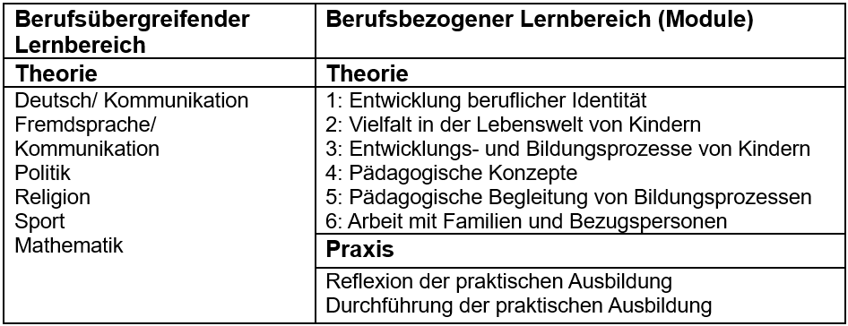 - ermöglicht den Besuch der zweijährigen Fachschule Sozialpädagogik, wenn mindestens befriedigende Leistungen im Fach Deutsch sowie in den berufsbezogenen Lernbereichen Theorie und Praxis erreicht wurden.
