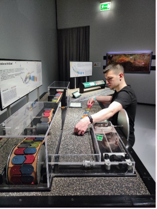 Ein Mitarbeiter des Phaeno war sofort für uns persönlich da, erklärte freundlich die örtlichen Gegebenheiten, führte uns zur ersten Station und ermutigte die Schüler*innen dazu, alles einmal auszuprobieren und sich auf die vielfältigen Phänomene, die einige Rätsel aufgeben, einzulassen.