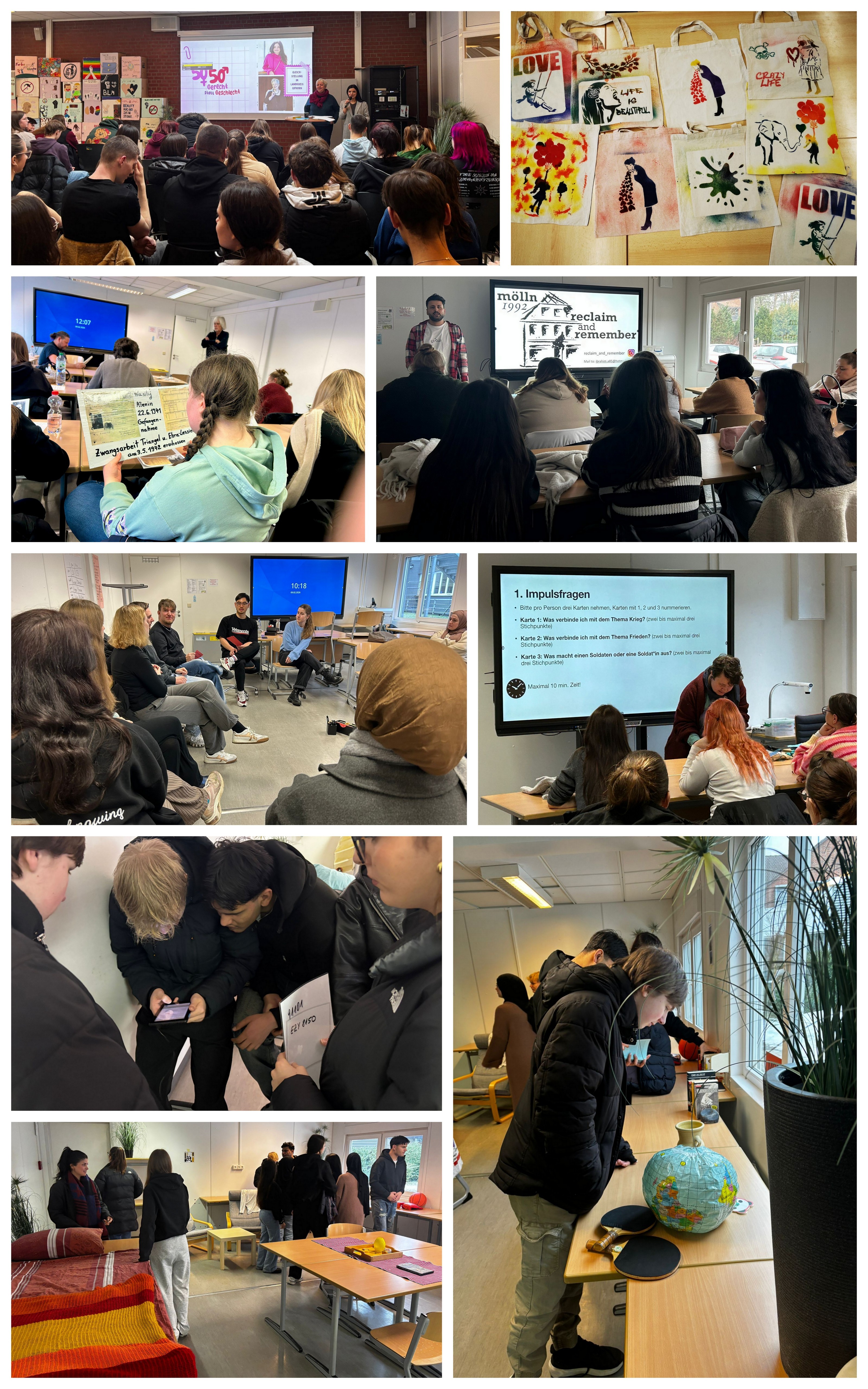Der erste Tag der Demokratiewoche stand ganz im Zeichen der intensiven Auseinandersetzung mit Rassismus, Geschichte und demokratischer Verantwortung. Im Mittelpunkt des Programms stand die Begegnung mit Ibrahim Arslan, Überlebender des rassistischen Brandanschlags von Mölln im Jahr 1992. In eindrucksvollen Gesprächen und Arbeitsphasen berichtete er von seinen persönlichen Erfahrungen, sprach über Rassismus in Deutschland und dessen gesellschaftliche Folgen sowie über die Bedeutung von Erinnerung, Empathie und Zivilcourage. Seine Offenheit und Authentizität hinterließen bei den Schülerinnen und Schülern einen nachhaltigen Eindruck und regten zu tiefgehender Reflexion an.