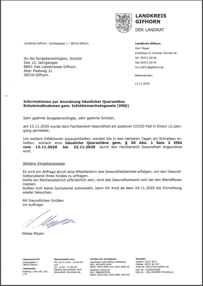 Jahrgang 12 des Beruflichen Gymnasiums muss in häusliche Quarantäne