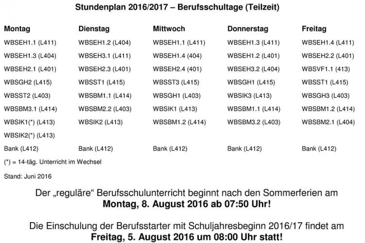 Die Berufsschulunterrichtszeiten entnehmen Sie bitte der nachstehenden Übersicht: