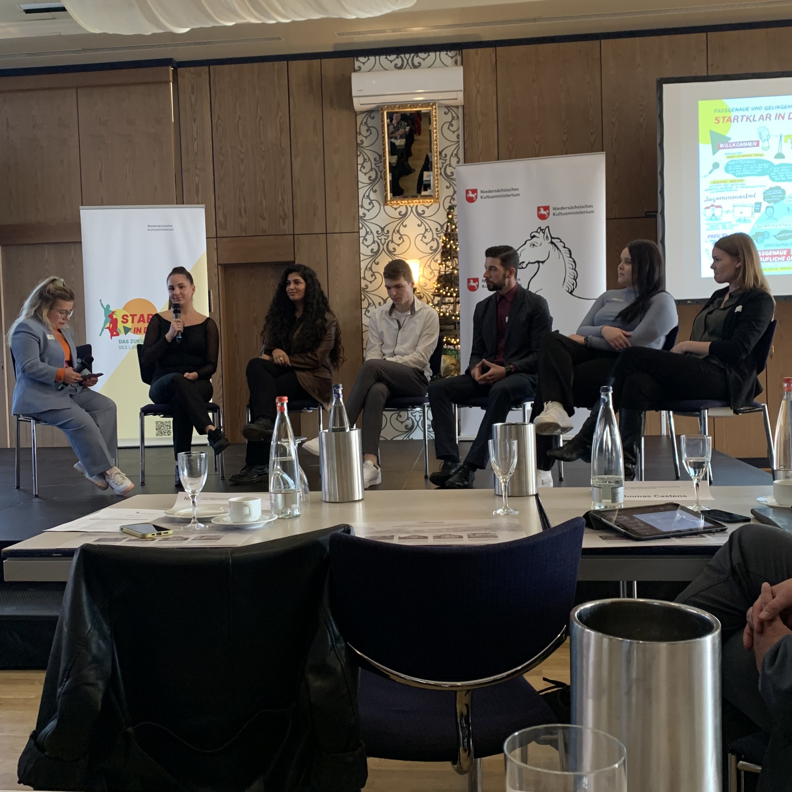 Im Rahmen dieser Tagung durften Frau Micheel, Frau Straub und der Auszubildende Fabio Würtz (Verkäufer im 2. Ausbildungsjahr bei Edeka Center Nowak) das Projekt vorstellen und standen für Fragen der Teilnehmerinnen und Teilnehmer zur Verfügung. Die neue Kultusministerin Frau Julia Willie Hamburg begrüßte die Teilnehmerinnen und Teilnehmer mit einer Videobotschaft. Bevor die Schülerinnen und Schüler ihre Projekte vorstellen konnten, hielt Frau Prof. Dr. Katja Driesel-Lange von der Universität Münster einen Vortrag zur passgenauen beruflichen Orientierung. Danach wurde mit den Schülerinnen und Schülern eine Podiumsdiskussion zum Thema „Mein Weg in die Ausbildung“ geführt, in der die Teilnehmerinnen und Teilnehmer einen Einblick in die Berufsfindung aus Sicht der Jugendlichen bekamen.
