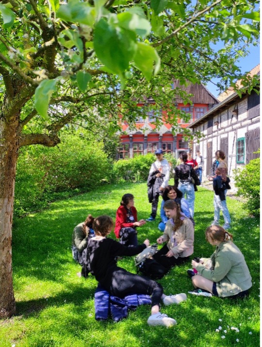 Der schöne Abschluss eines erlebnisreichen Vormittags: Bei herrlichem Wetter können alle Schüler*innen im Garten des Kavalierhauses entspannen und sich über das Gelernte austauschen.